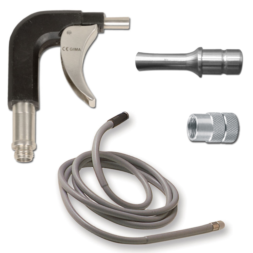 Amnioscop cu sursa de lumina Halogen 150 Watt, Adaptor F.O. si cablu flexibil F.O. prin fibra optica, trei tuburi pentru amnioscopie cu obturator lungime 200 mm si Ø 12x24 mm, 16x24 mm, 20x24 mm, tuburile sunt gradate în centimetri, au capat rotunjit si sunt sterilizabile in autoclav sau pupinel. Amnioscop cu adaptor endo Storz™, maner unghiular F.O. prin fibra optica pentru conectare la sursa de lumina. Livrat într-o geanta transport.