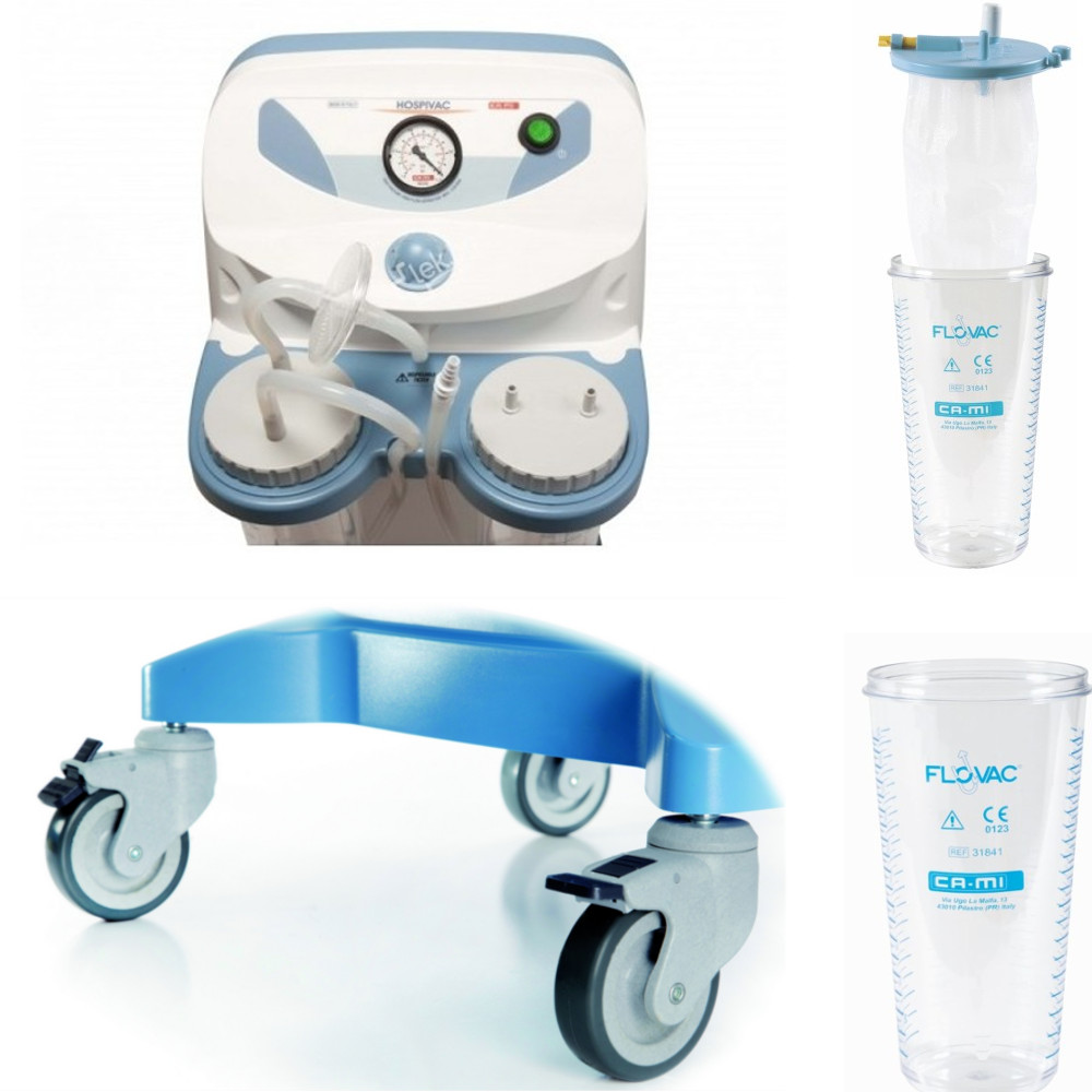 Aspirator chirurgical Hospivac 350, modul mobil 4 roti duble antistatice, 2 cu frana, compartiment pentru accesorii.