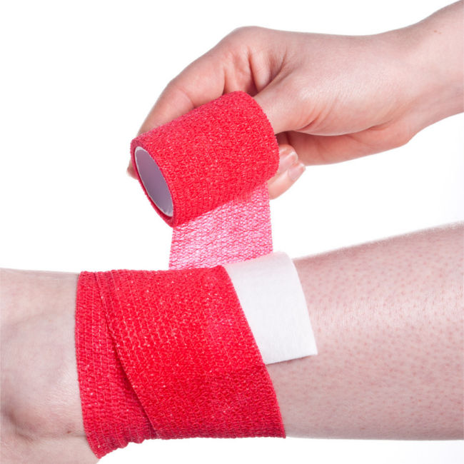 Bandaje elastice coezive prin puncte latex microfine. Bandaj elastic coeziv, pentru fixarea pansamentelor, sustinerea articulatiilor in cazul fracturilor usoare, nu necesita clipuri, deoarece ramane bine atasat la sine.