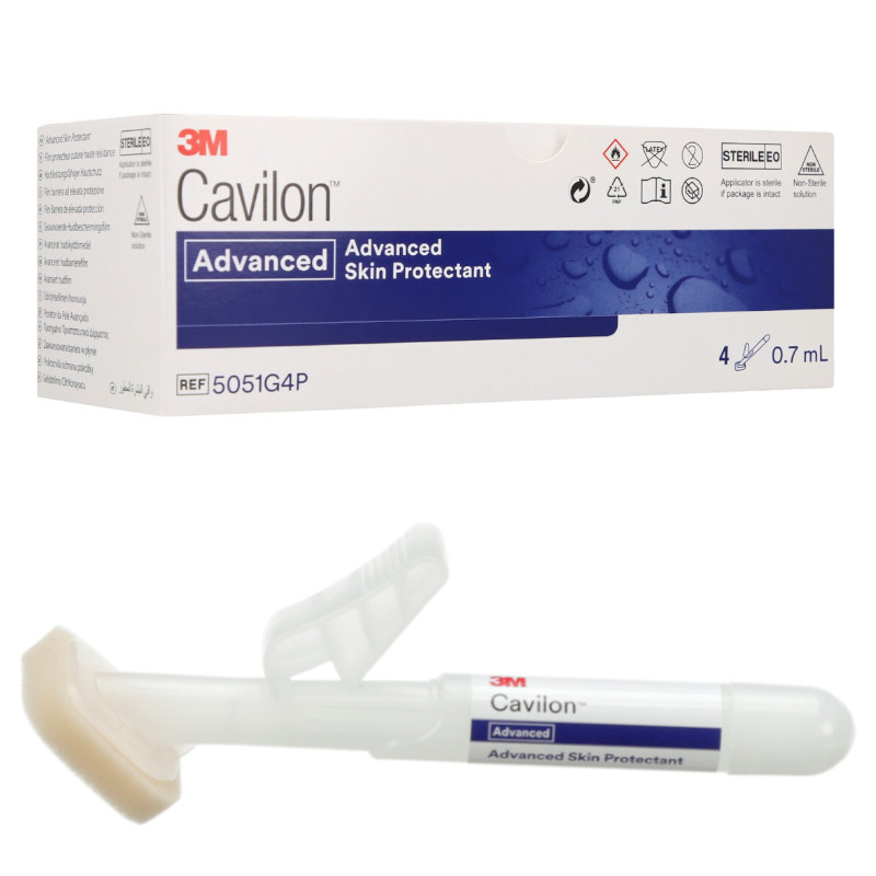 Solutia Cavilon™ Advanced ambalata în aplicatoare de unica folosinta 0.7 ml, reducand riscul de contaminare încrucisata si oferind aplicare precisa si igienica. Cavilon™ Advanced ideal pentru prevenirea si tratamentul dermatitei asociate incontinentei (IAD) si altor afectiuni cutanate cauzate de umiditate excesiva. Creme de protectie, fara alcool, hipoalergenic, non-iritant si utilizat în siguranta pe pielea lezata, sub pansamente, bandaje sau adezivi medicali, fara a afecta fixarea acestora.
