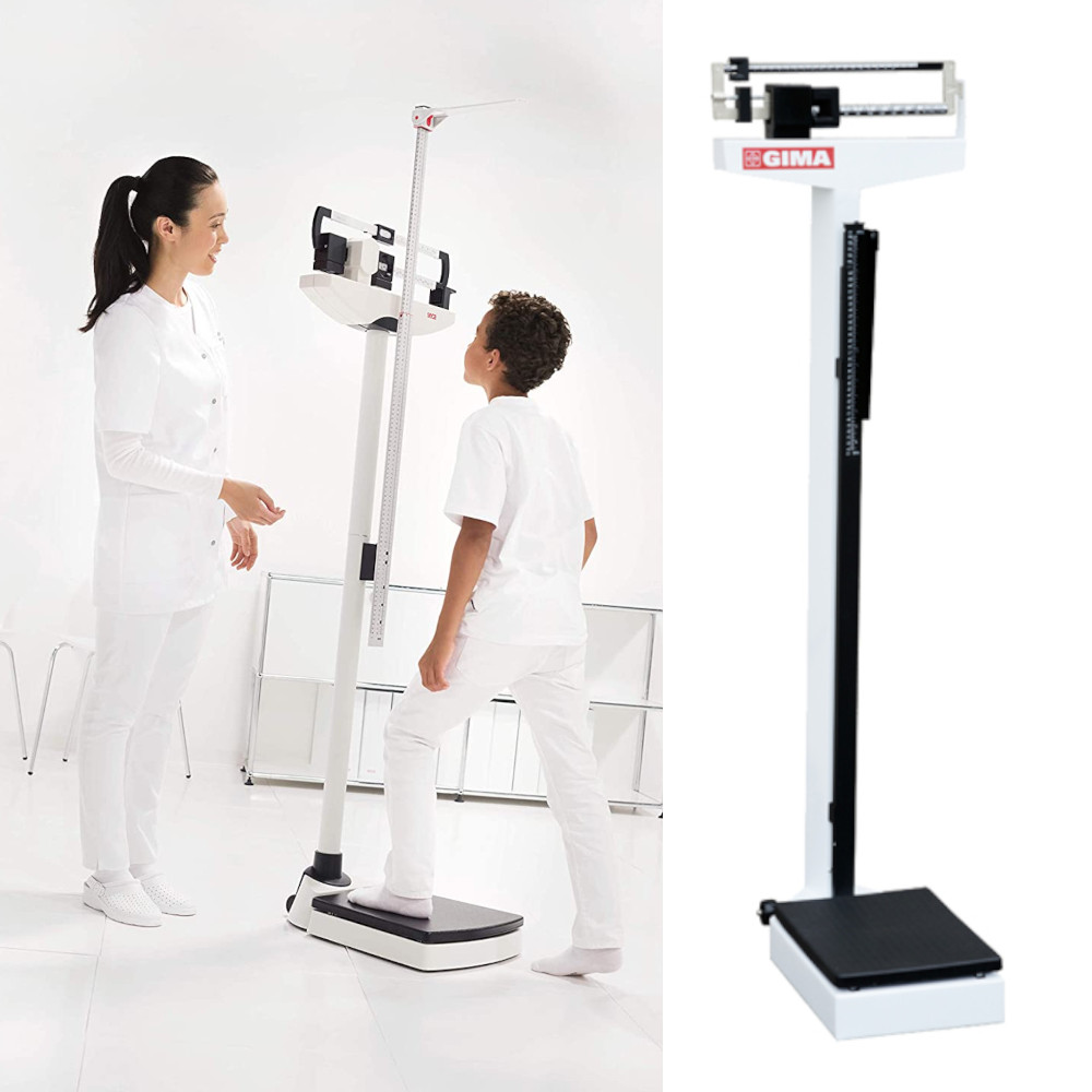 Cantar mecanic cu taliometru, constructie solida din otel, platforma anti alunecare, cifre usor lizibile, roti pentru o mobilitate usoara. Cantare medicale Gima® Italia, destinate pentru utilizarea in centre medicale, spitale, cabinete medicale, medicina de famile, medicina muncii, etc.