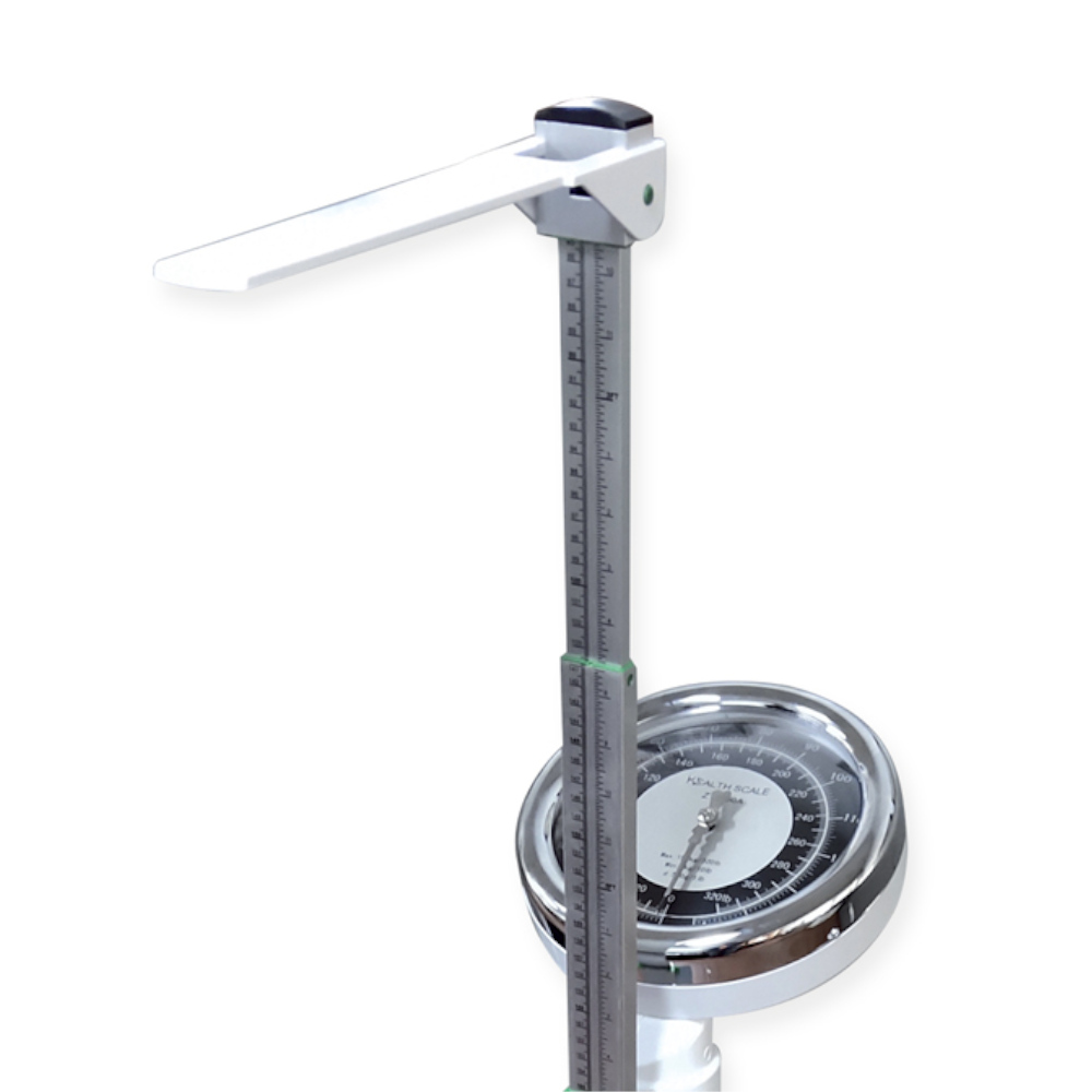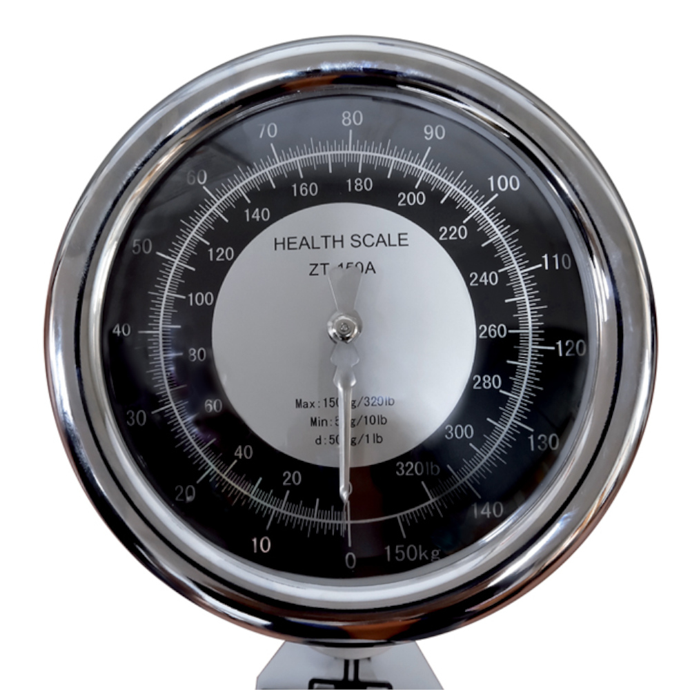 Cantar medical cu taliometru Sirio®, design ergonomic, fiabilitate, precizie garantata pentru masuratori exacte si precise. Cantar mecanic cu taliometru, constructie solida din otel, cadran afisare cu margine cromata Ø 320 mm, cifre usor lizibile, unitati de masura in kg / lbs, zero automat.
