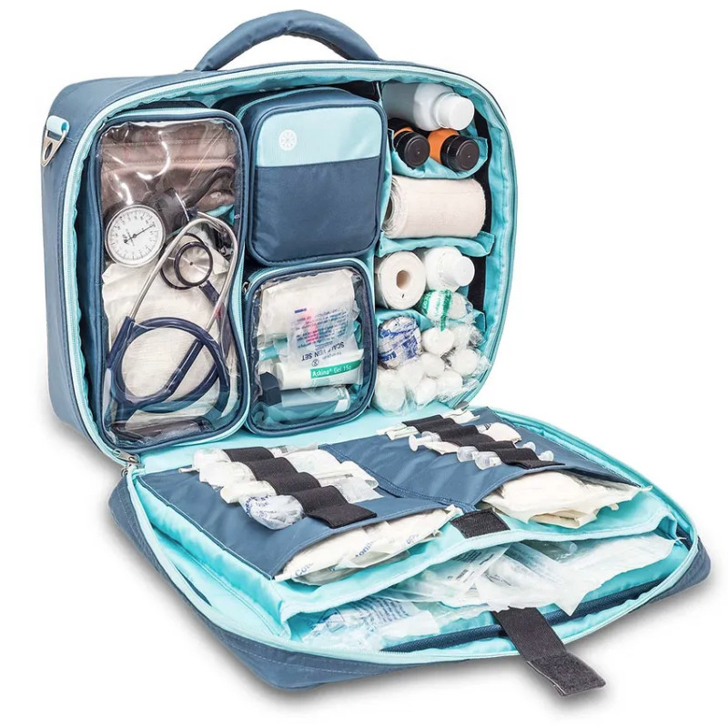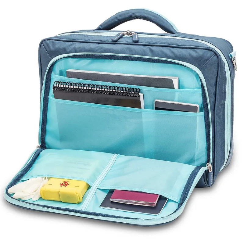Geanta medicala Practis, albastra, compacta si usor de transportat, geanta medic model de mana, umar sau rucsac medical, banda pentru carucior, comoditate in utilizare. Geanta medicala pentru vizite si ingrijire medicala la domiciliu pentru medicii de familie, medici generalisti, medici pediatri, specialisti diverse domenii medicale, etc. Genti medicale profesionale Elite Bags® Practi's materiale calitate superoara, rezistenta maxima, design modern, forma ergonomica, structura rigida, asigura organizarea optima si transportul in siguranta a produselor medicale si implicit asigurarea asistentei medicale profesionale.