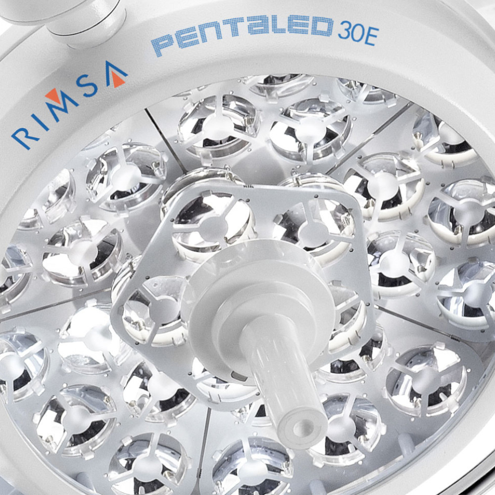 Lampa scialitica Pentaled™ 30E cu montare de tavan, lumina LED Hi-Tech™, inovatie in iluminare medicala. Performanta si eficienta într-un design modern si functional. Lampa scialitica chirurgie LED Pentaled™ 30E, dimensiuni compacte care garanteaza niveluri excelente de performanta. Lampa chirurgicala LED Pentaled™ 30E are 30 de reflectoare eliptice împartite în 6 module, fiecare modul cu 5 LED-uri, oferind 160.000 LUX, camera integrata de inalta definitie (inclusa)