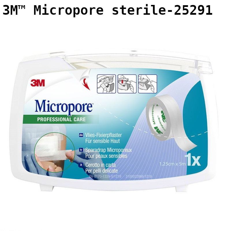 - 3M™ Micropore™ S (Silicone) - banda sterila cu adeziv siliconic, blanda cu pielea, potrivita pentru nou-nascuti, varstnici sau persoane cu piele sensibila. Asigura aderenta pana la 48 de ore si îndepartare atraumatica.