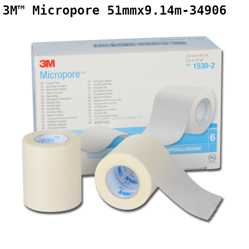- 3M™ Micropore™ (Paper) - banda din hartie, alba, hipoalergenica, foarte respirabila, ideala pentru fixarea pansamentelor. Poate fi aplicata chiar si pe piele umeda.