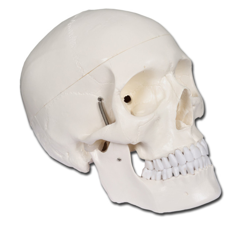 Model craniu uman anatomie, reproducere detaliata a craniului uman în marime naturala cu toate detaliile structurale. Macheta craniu uman, mandibula articulata, calota craniana este detasabila pentru a afisa detalii interne.