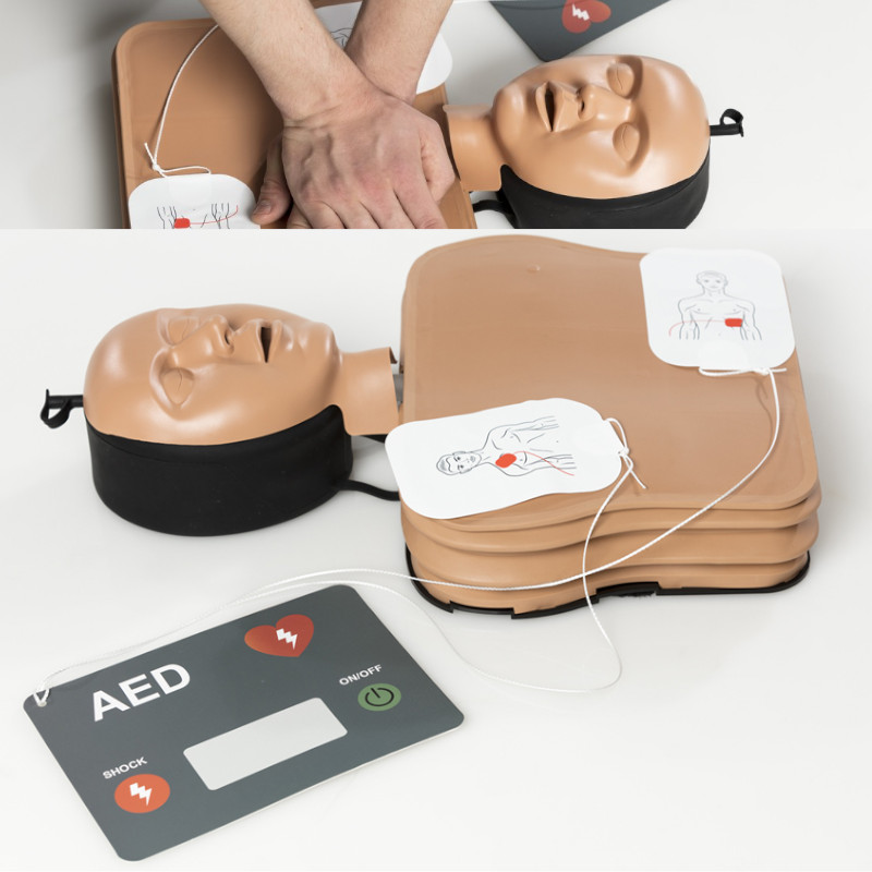 Antrenament DAE usor: datorita trunchiului în forma închisa, pot fi asezate tampoane de defibrilare pentru a efectua un antrenament DAE realist.