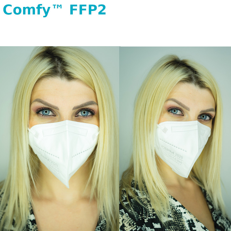 Mastile de protectie respiratorie Comfy™ FFP2, asigura confort optim pe tot parcursul zilei datorita materialului moale. Designul sau permite o mai mare miscare faciala si adaptabilitate la fata, fara a strange nasul si urechile. Mastile medicale Comfy™ FFP2 asigura o protectie adecvata a cailor respiratorii împotriva particulelor (praf, fum, ceata si microorganisme), a aerosolilor lichizi si solizi netoxici. Masti protectie din material netesut, izolatie termica din bumbac, 2 straturi de filtrare, fixare cu elastic, clema pentru nas reglabila din otel.
