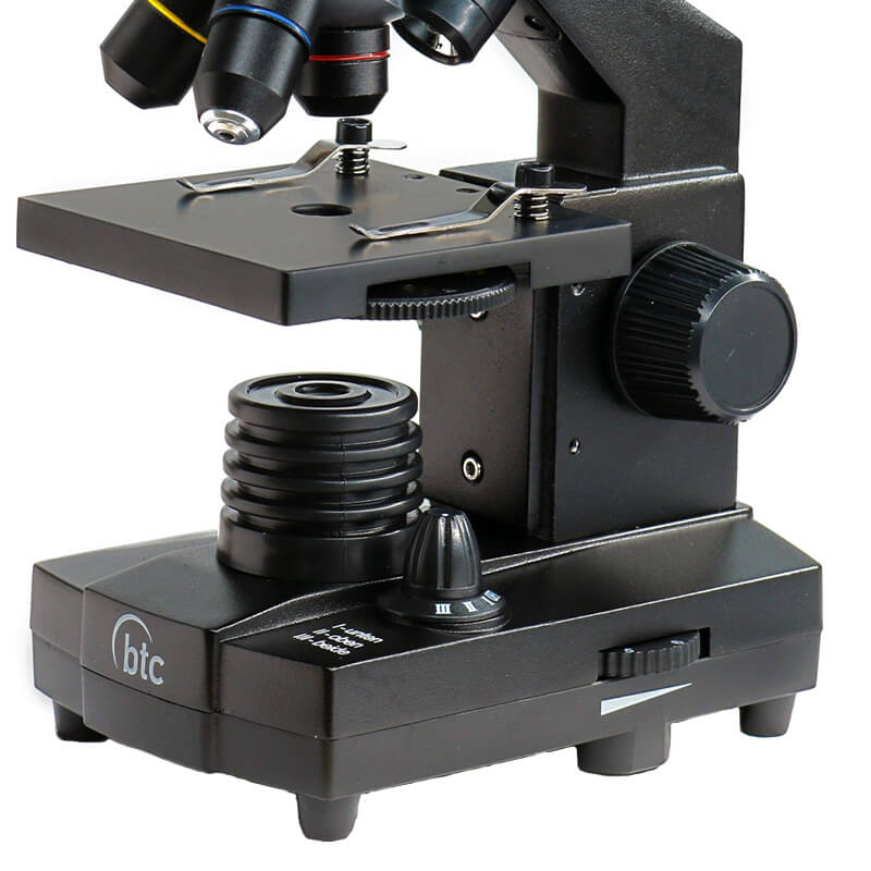 Microscopul biologic Student® 12, iluminare integrata cu LED inferioara (este utilizata pentru specimene transparente, ex. preparate biologice, aripa de tantar, sau o felie de subtire de ceapa) si superioara (este utilizata pentru obiecte opace, ex. frunze, minerale insecte).