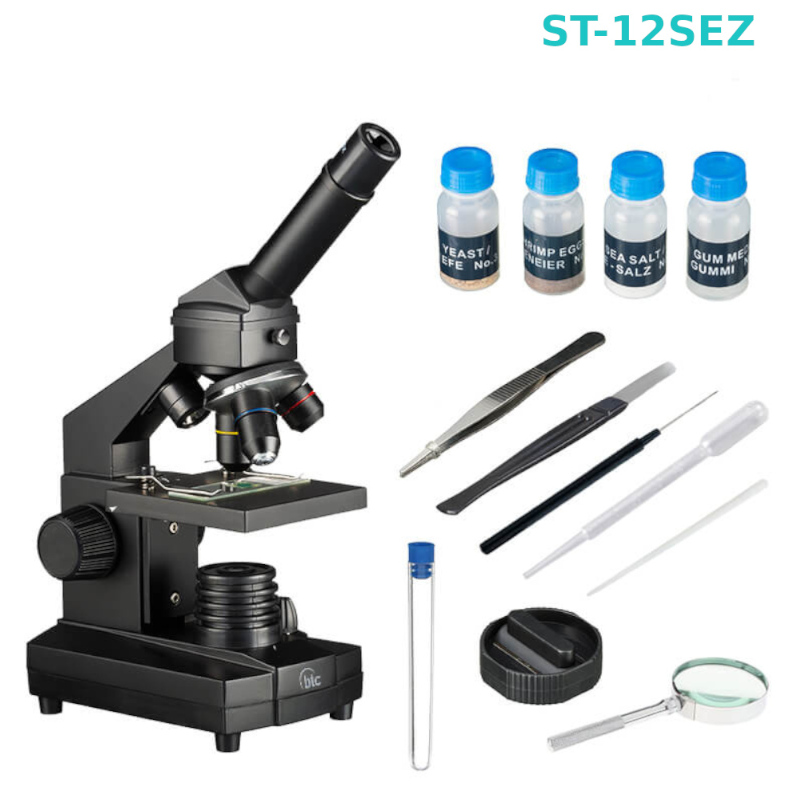 - Microscop biologic Student® 12 cu trusa pentru pregatirea preparatelor + set 5 lame de microscop in cutie + adaptor pentru telefon, cod ST-12SEZLT