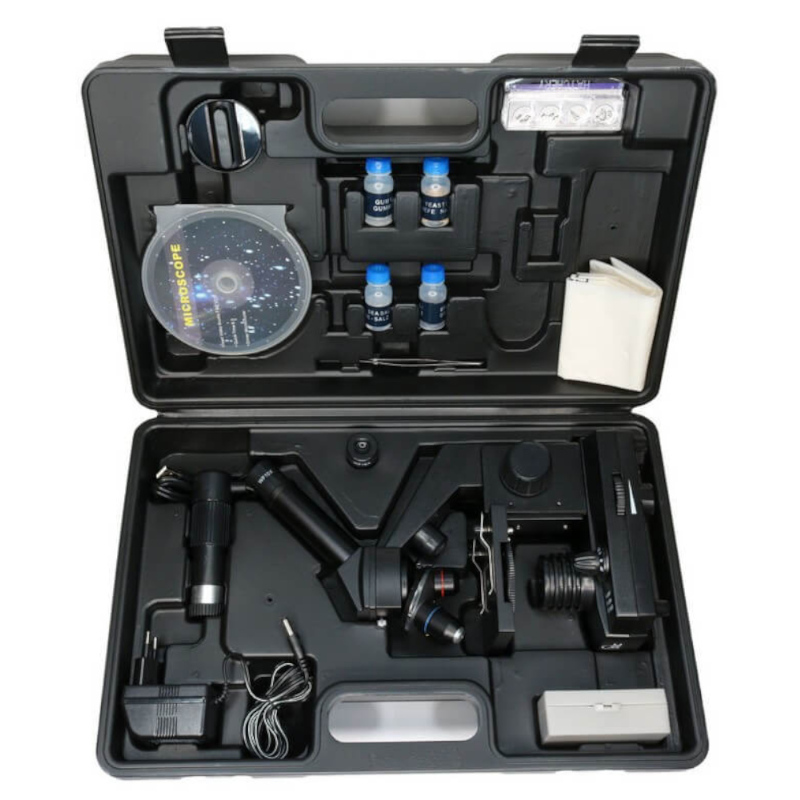 - Microscop biologic Student® 12 cu camera CCD 1,3mp, 5 lame, 5 preparate, microtom, husa de protectie, valiza de transport, cod ST-12SET