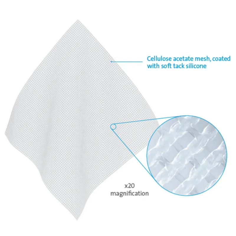 - Fabricat din acetat de celuloza impregnat cu emulsie de petrolatum, acest pansament are structura de plasa care permite trecerea exsudatului catre pansamentul secundar, prevenind acumularea de lichid si macerarea pielii. Potrivit pentru rani cu exsudat redus pana la ridicat - ulcerele, arsurile superficiale (gradul I-II), abraziunile si plagile post-operatorii. Poate fi folosit si sub bandaj compresiv.