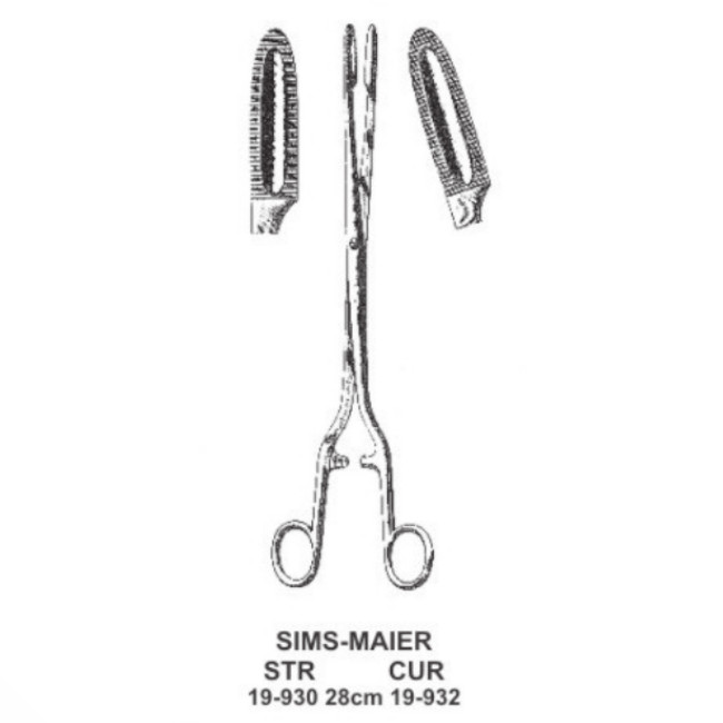 Pensa port-tampon Sims-Maier, dreapta sau curba, varfuri striate, dimensiuni - 28,0 cm. Pense chirurgicale port-tampon Sims-Maier din otel inoxidabil (inox Japonia), rezistente la sterilizarea cu abur sub presiune (autoclav) sau sterilizare cu caldura uscata (pupinel).