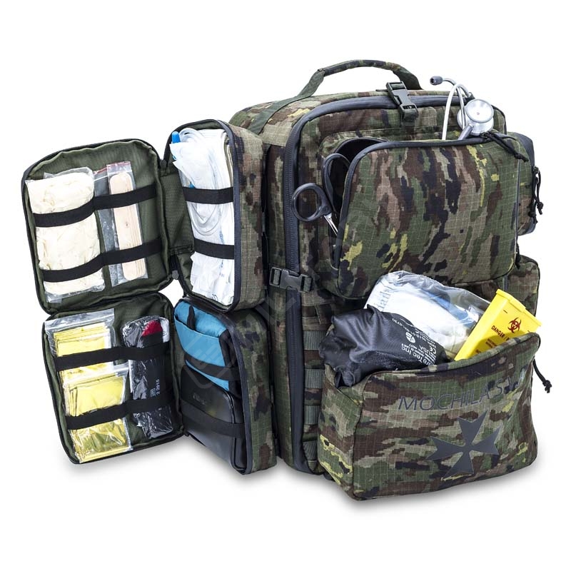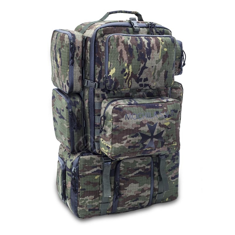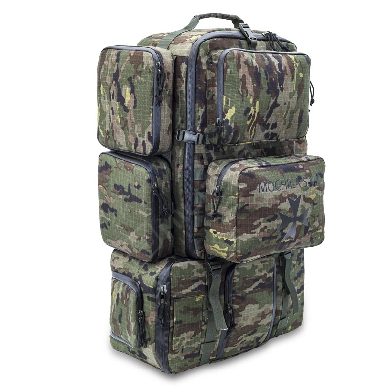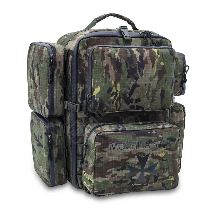 Rucsac medic militar Mochila SVA este compartimentata, geanta resuscitare detasabila spatiu cu benzi de fixare pentru masca si recipientul cu oxigen, compartimentul principal mai multe benzi elastice de marimi diferite pentru introducerea diverselor materiale medicale.