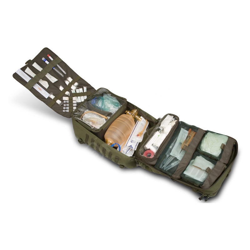 Rucsac medical militar pentru urgenta medicala PARAMED’S, compartiment pentru tuburi oxigen medical, spatiu cu benzi de fixare pentru accesorii resuscitare, intubatie, spate rucsac captusit, curele umeri reglabile pe lungime, captusite, bretele ajustabile în jurul rucsacului ce permit atasarea altor componente, benzi reflectorizante..