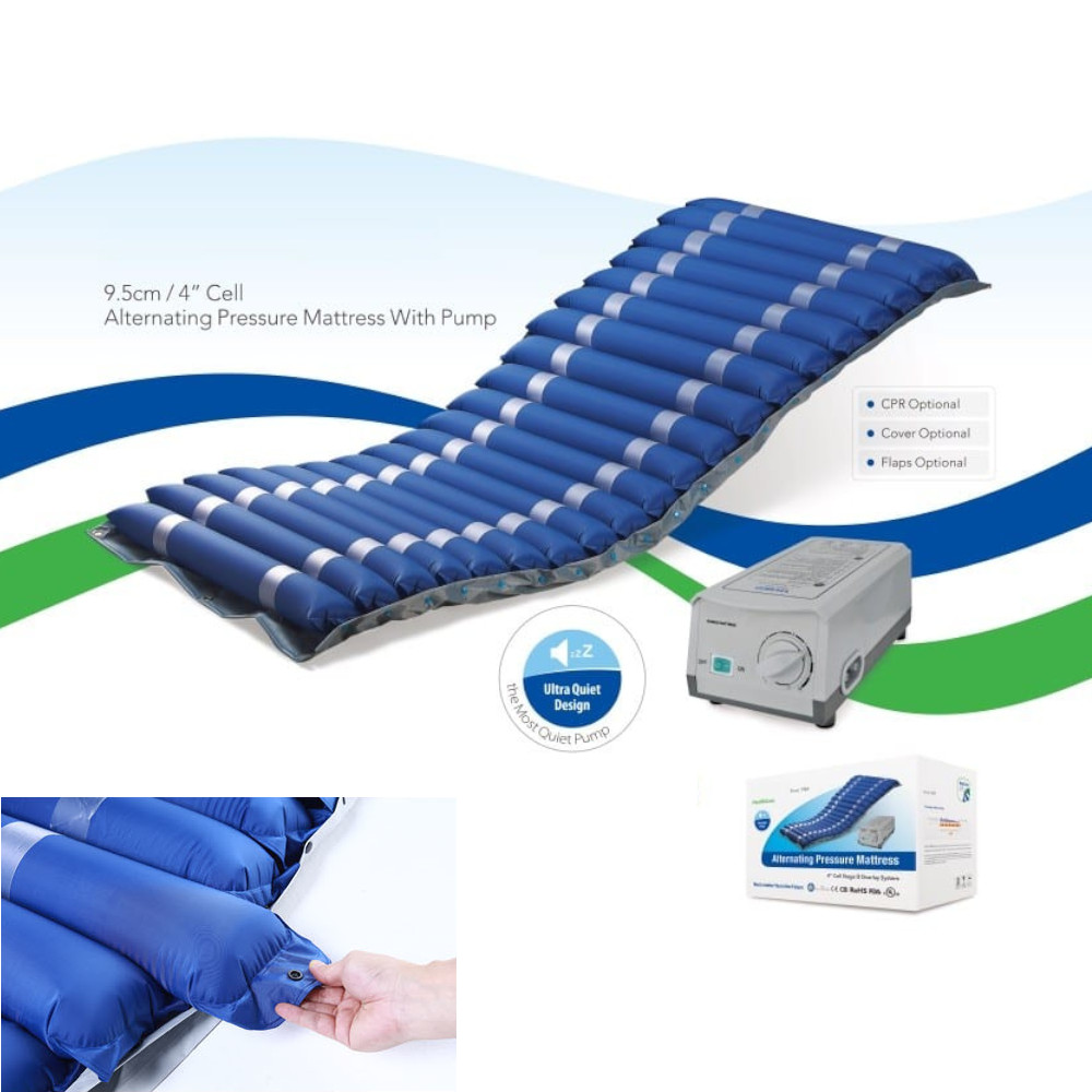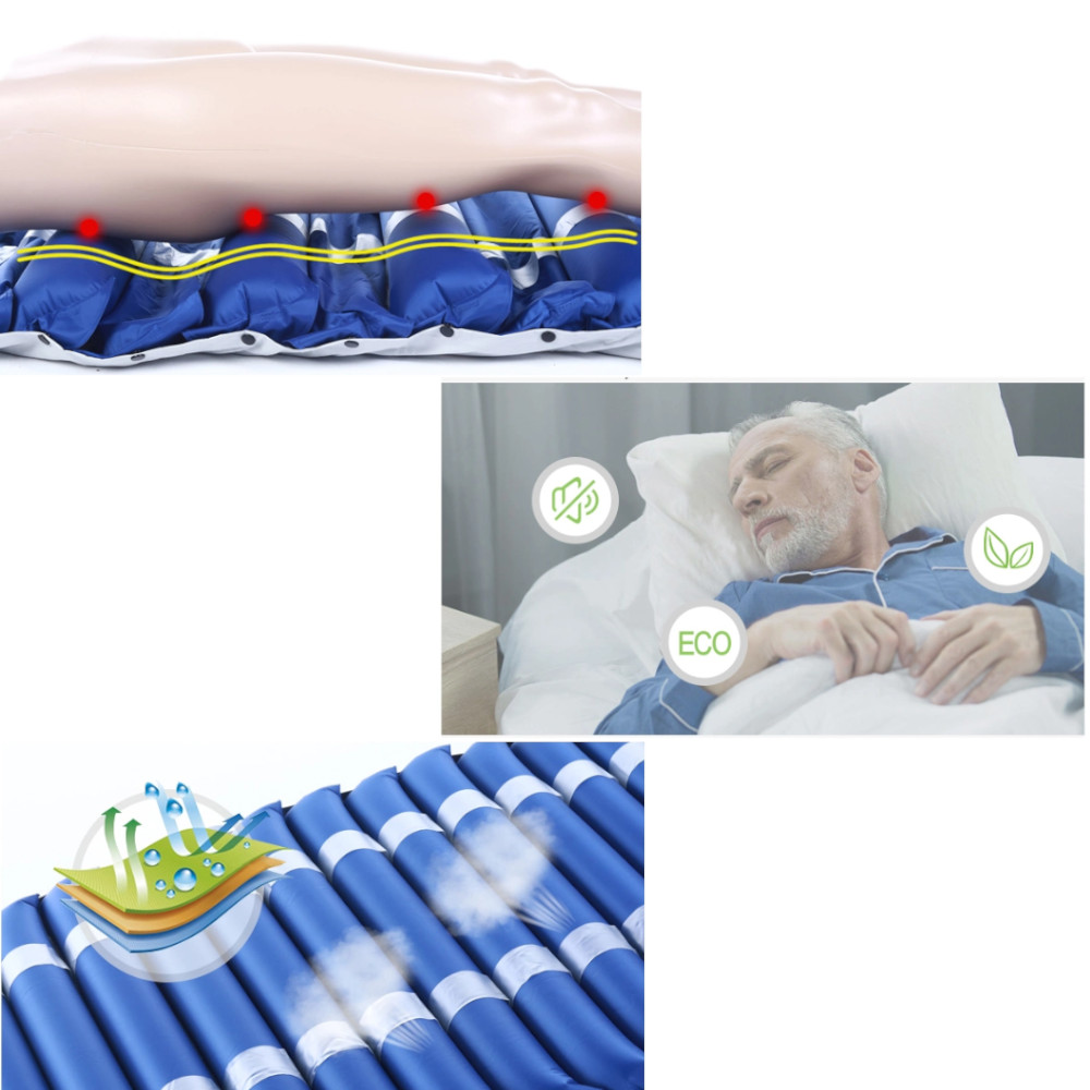 Saltea kinetoterapie cu celule interschimbabile, recomandata pentru prevenirea si tratarea escarelor de decubit stadiul I si II in terapiile pe termen mediu sau la domiciliu. Celule din Nylon+PVC cu dimensiuni de 86 x 9,5 cm ofera un confort superior. Celulele sunt fixate cu ajutorul unui stift de presiune si pot fi înlocuite cu usurinta în caz de rupere.