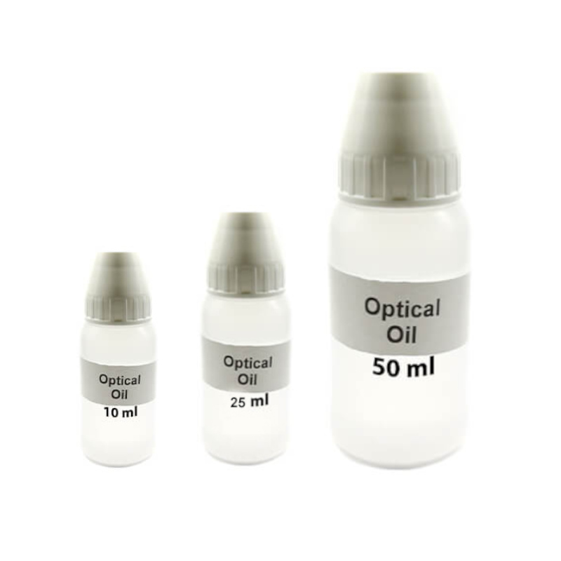 - Uleiul de imersie, sau optic, este utilizat la anumite obiective de 100x (microscop biologic) datorita necesitatii crearii unui mediu de transfer între specimen si obiective, din cauza maririi mari si a indicelui de refractie ridicat. Uleiul optic trebuie sa fie îndepartat de pe obiectiv pentru a evita distorsiuni ale imaginii la urmatoarea utilizare.