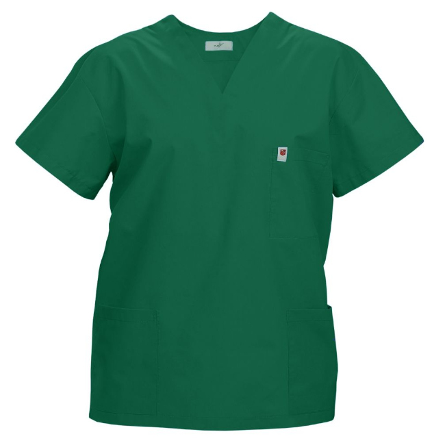 Uniforma medicala pentru barbati, culoare verde padurar. Costum medical din panza de calitate superioara cu textura fina, nu se sifoneaza, tesatura rezistenta. Bluza medic, dreapta, anchior "V", maneca scurta, 3 buzunare. Pantalon medic, croiala dreapta, banda elastica la spate, snur fata. Uniforme medicale marimi: XS, S, M, L, XL, XXL, material: poplin special - PES 65%, BBC 35%, 165g/m2, temperatura de spalare - alb 90 °C, color 60 °C.
