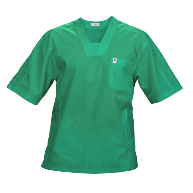 Costum medical pentru barbati, stil sport, culoare verde deschis, cusaturi duble ornamentale. Uniforme medicale material cu textura placuta la atingere, nu se sifoneaza. Bluza medicala cu maneca scurta, croiala dreapta, 2 buzunare interioare, 1 buzunar aplicat in partea superioara. Pantalon medic, croiala dreapta, doua buzunare interioare, banda elastica de 4 cm la spate, snur fata. Marimi uniforma medicala: XS, S, M, L, XL, XXL, material: poplin slefuit - PES 60%, BBC 40%, 130g/m2, temperatura de spalare - alb 60 °C, color 40 °C