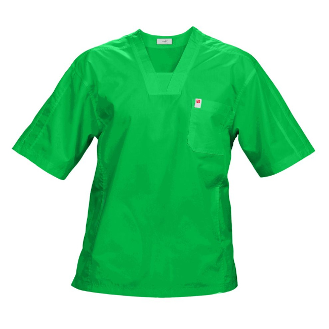 Costum medical pentru barbati, stil sport, culoare verde iarba, cusaturi duble ornamentale. Uniforme medicale material cu textura placuta la atingere, nu se sifoneaza. Bluza medicala cu maneca scurta, croiala dreapta, 2 buzunare interioare, 1 buzunar aplicat in partea superioara. Pantalon medic, croiala dreapta, doua buzunare interioare, banda elastica de 4 cm la spate, snur fata. Marimi uniforma medicala: XS, S, M, L, XL, XXL, material: poplin slefuit - PES 60%, BBC 40%, 130g/m2, temperatura de spalare - alb 60 °C, color 40 °C