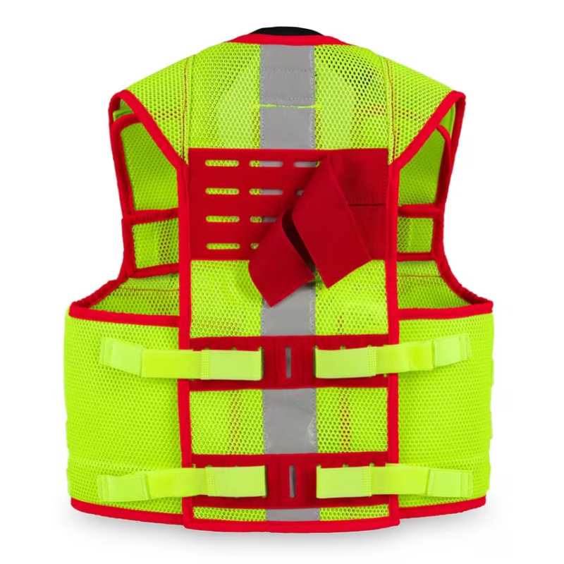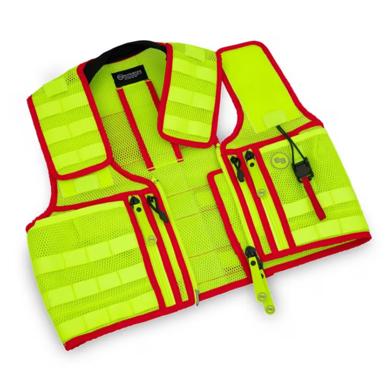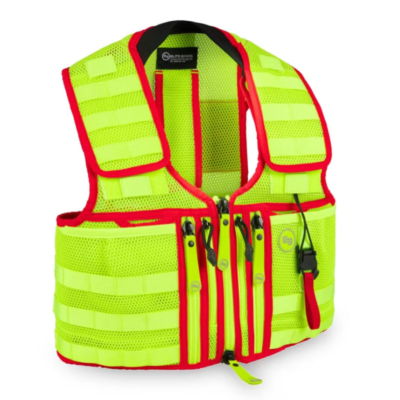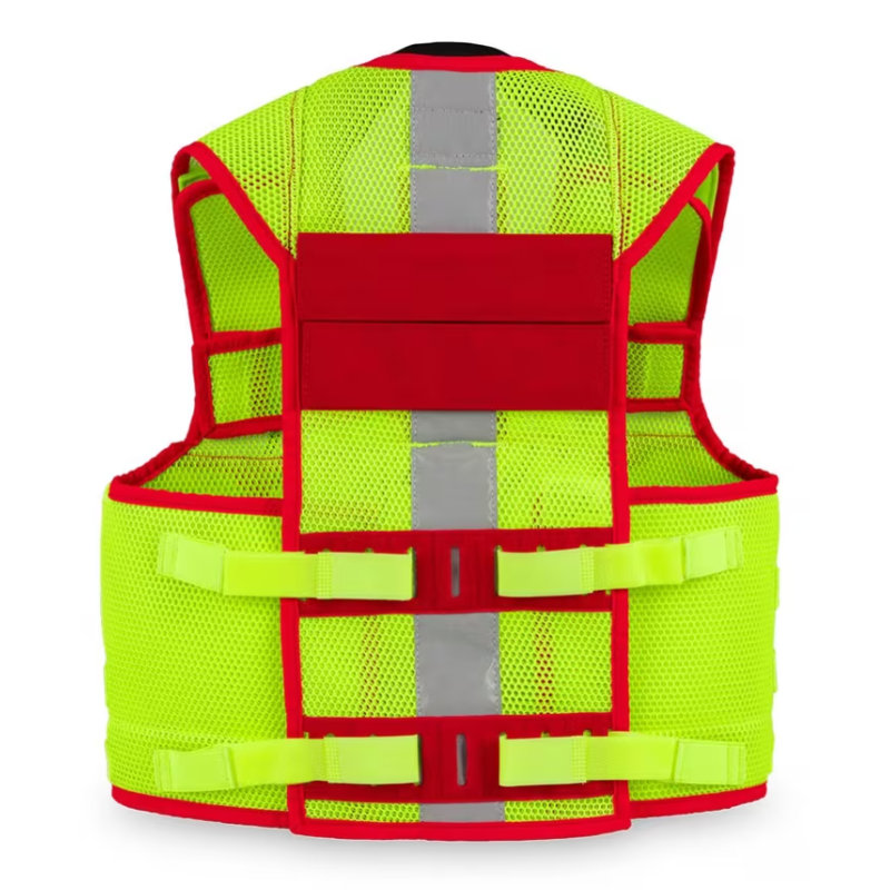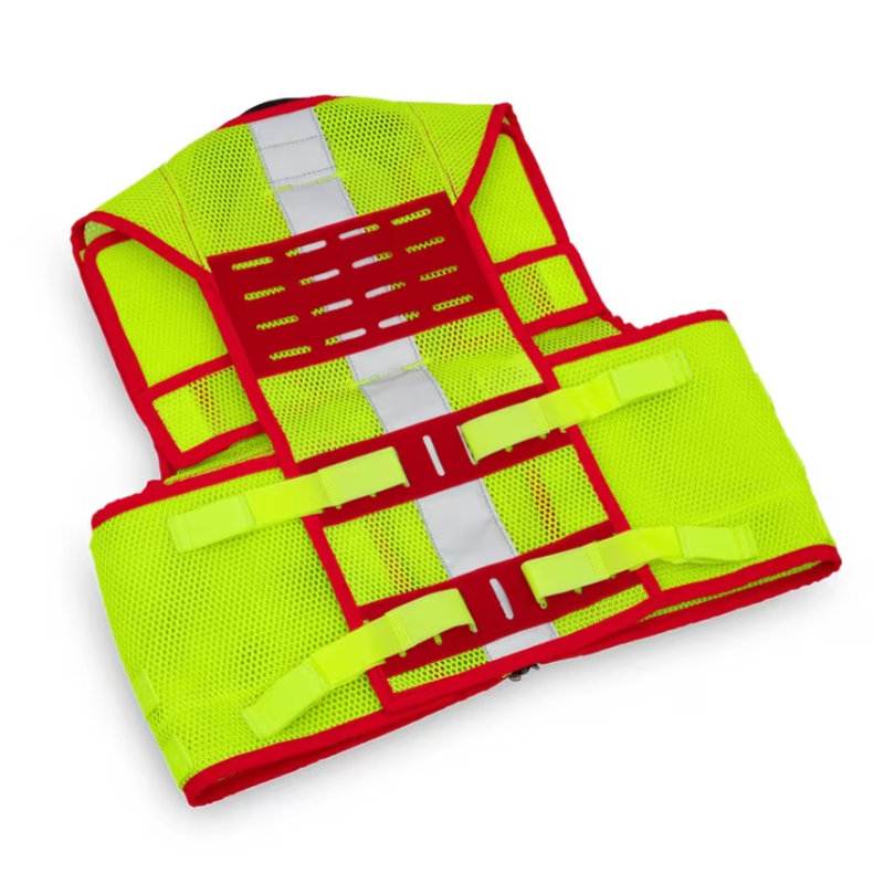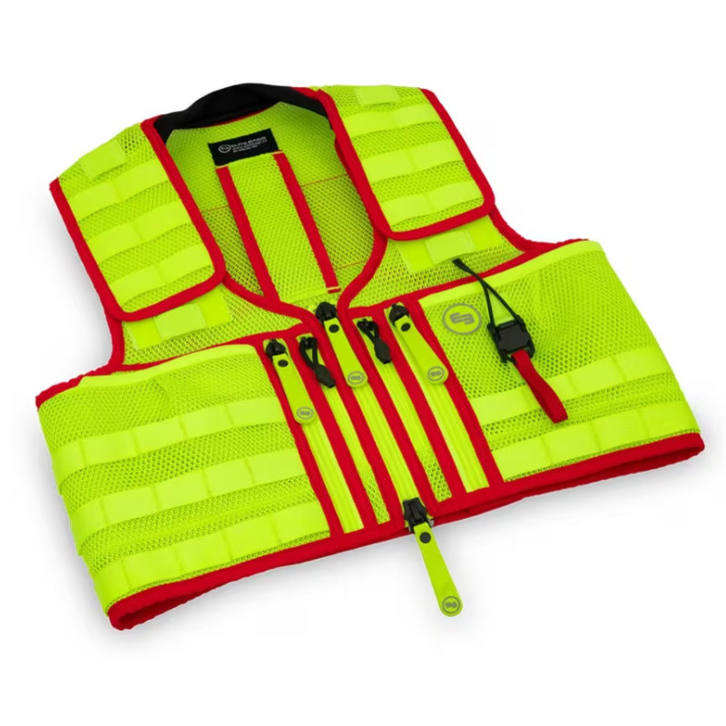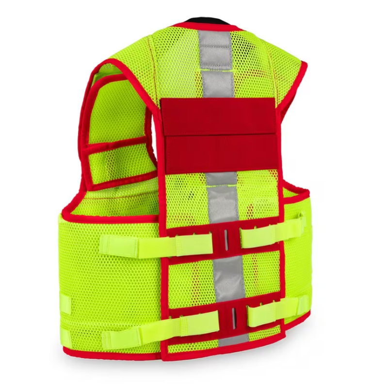 Veste de salvare din material Polyester de înalta rezistenta, vesta include sisteme MOLLE pe umeri, fata si laterale, buzunare ergonomice, fermoare robuste si zone de vizibilitate ridicata în culori fluorescente si rosu, cu insertii reflectorizante pentru siguranta în conditii critice. Designul inteligent optimizeaza organizarea echipamentului si reduce necesitatea purtarii de genti suplimentare în spatii înguste sau în timpul manevrelor verticale.